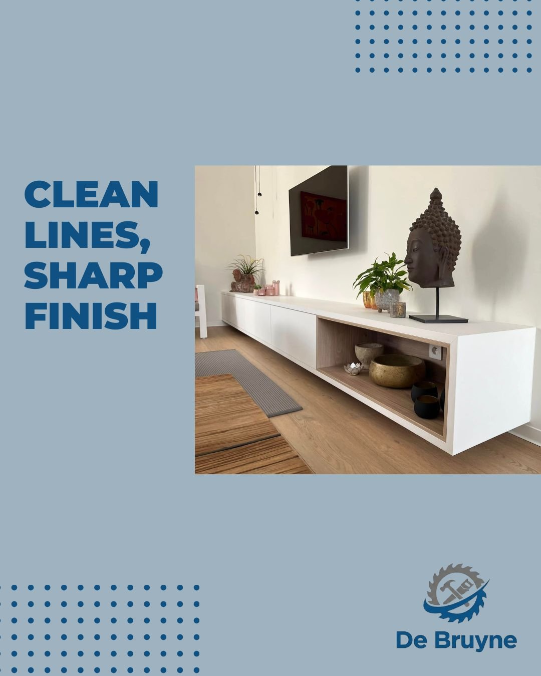📺Clean lines, sharp finish, and smart storage—custom-built to keep your living space calm, modern, and clutter-free.